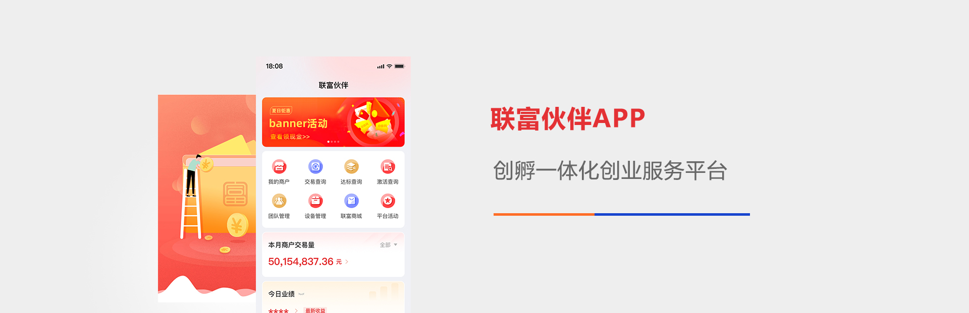 联富伙伴是一个集商户管理、团队管理、设备管理、营销管理、数据报表、营销服务等功能于一身,助力合作伙伴快速展业的移动展业服务平台。轻松管理团队业务进度、商户数据、设备状态,赋能伙伴创业,更好地服务一线商户。